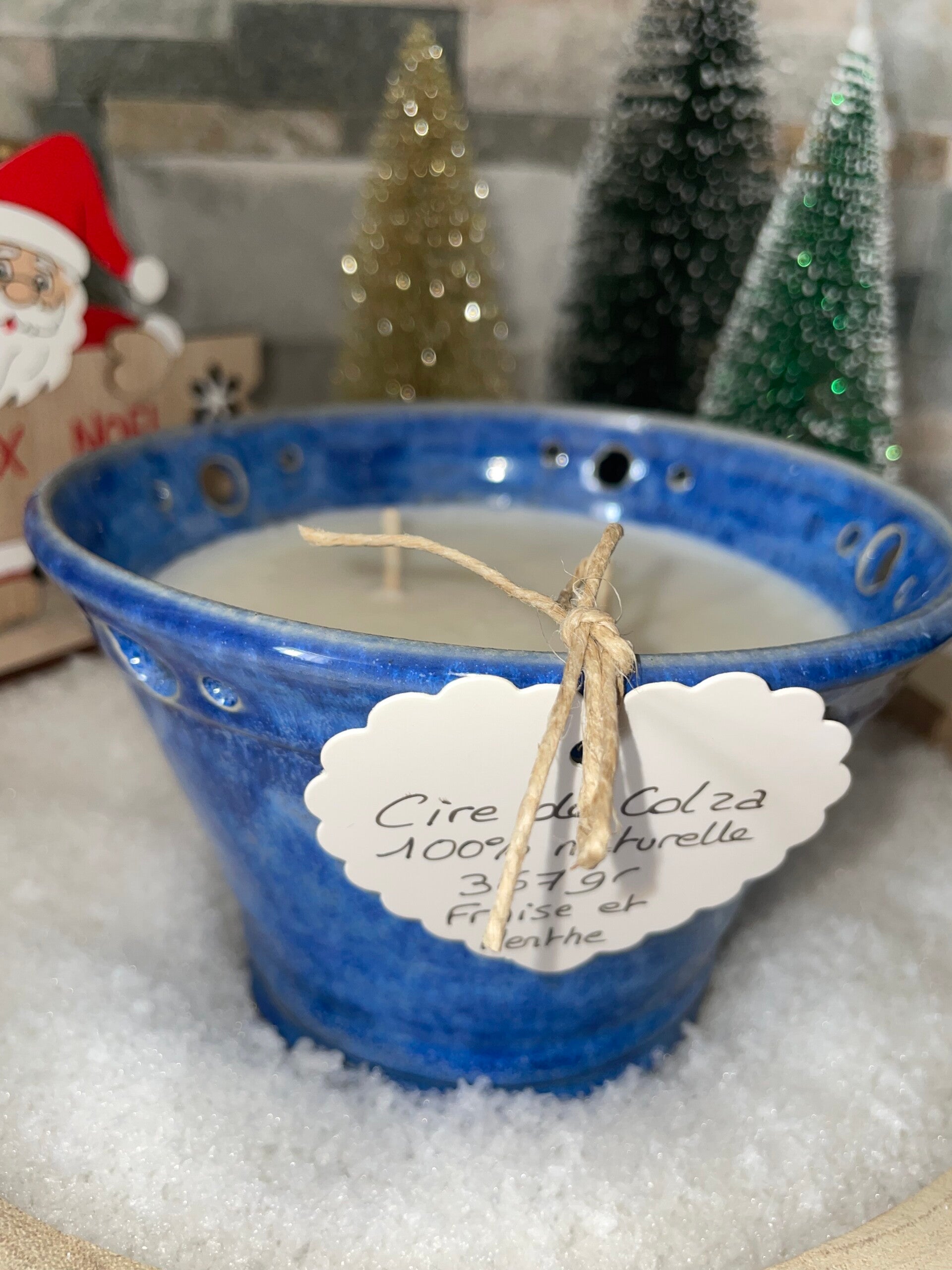 Bougie artisanale bleue senteur fraise menthe