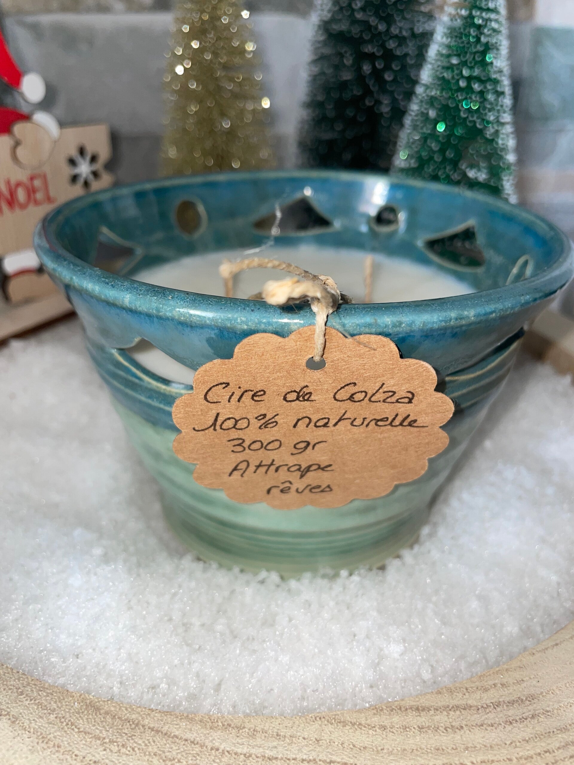 Bougie artisanale verte senteur attrape rêves